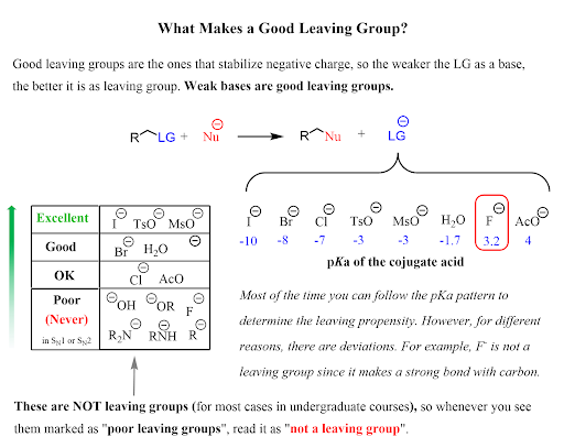 What Makes A Good Leaving Group In Nucleophilic Substitution And Elimination Reactions Chemistry Help Chemistry Teaching Chemistry